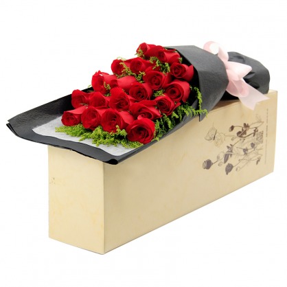 内白色棉纸,外黑色卡纸扇形包装,红色花结,高档礼盒