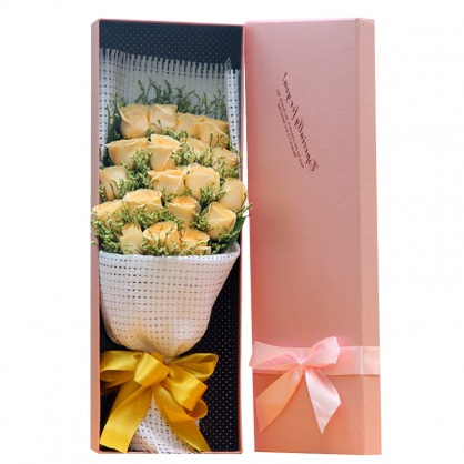 心心念你-19朵香槟玫瑰,搭配叶上金