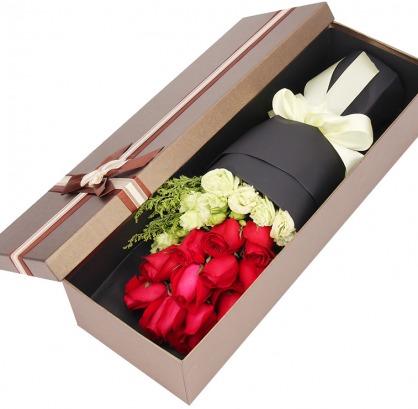 挚爱是你-11朵精品红玫瑰,搭配桔梗、黄莺