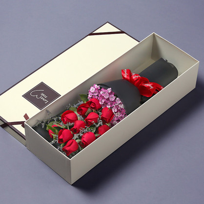 11朵红玫瑰,搭配粉色相思梅、情人草