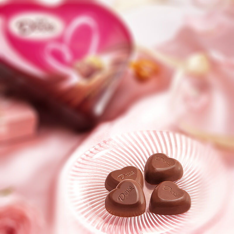 甜蜜可心-牛奶巧克力,黑巧克力,白巧克力,白砂糖,全脂乳粉,乳糖,乳糖食用植物油,53g盒装。